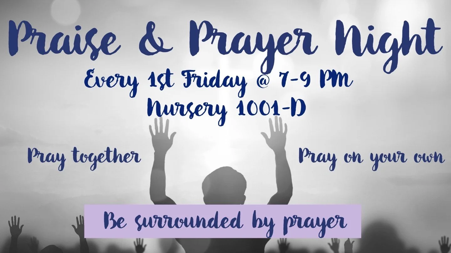 We invite you to IPM’s Praise & Prayer Night held every 1st Friday nights from 7–9 PM in the nursery 1001-D by the main sanctuary.